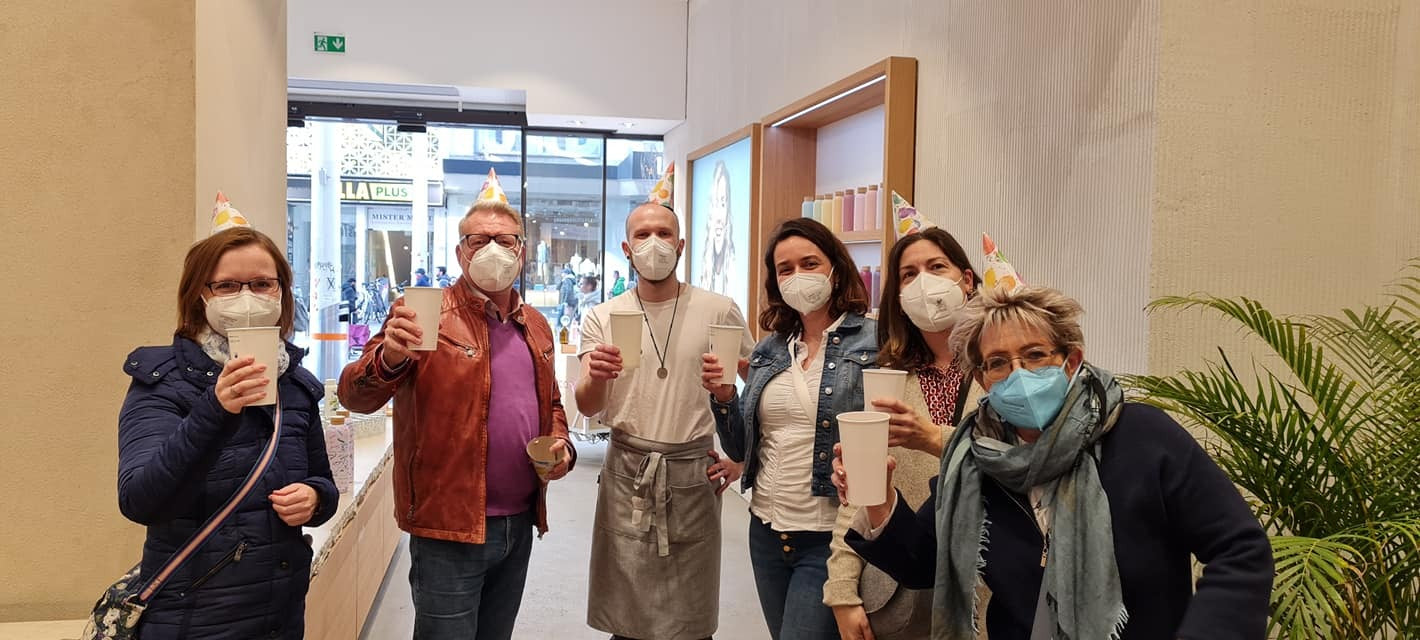 Photo 7: French customers Léa and Jean-Michel did a “Tour de waterdrop®” which ended in our Vienna HQ where they met up with Community Managers Camille and Morgane.