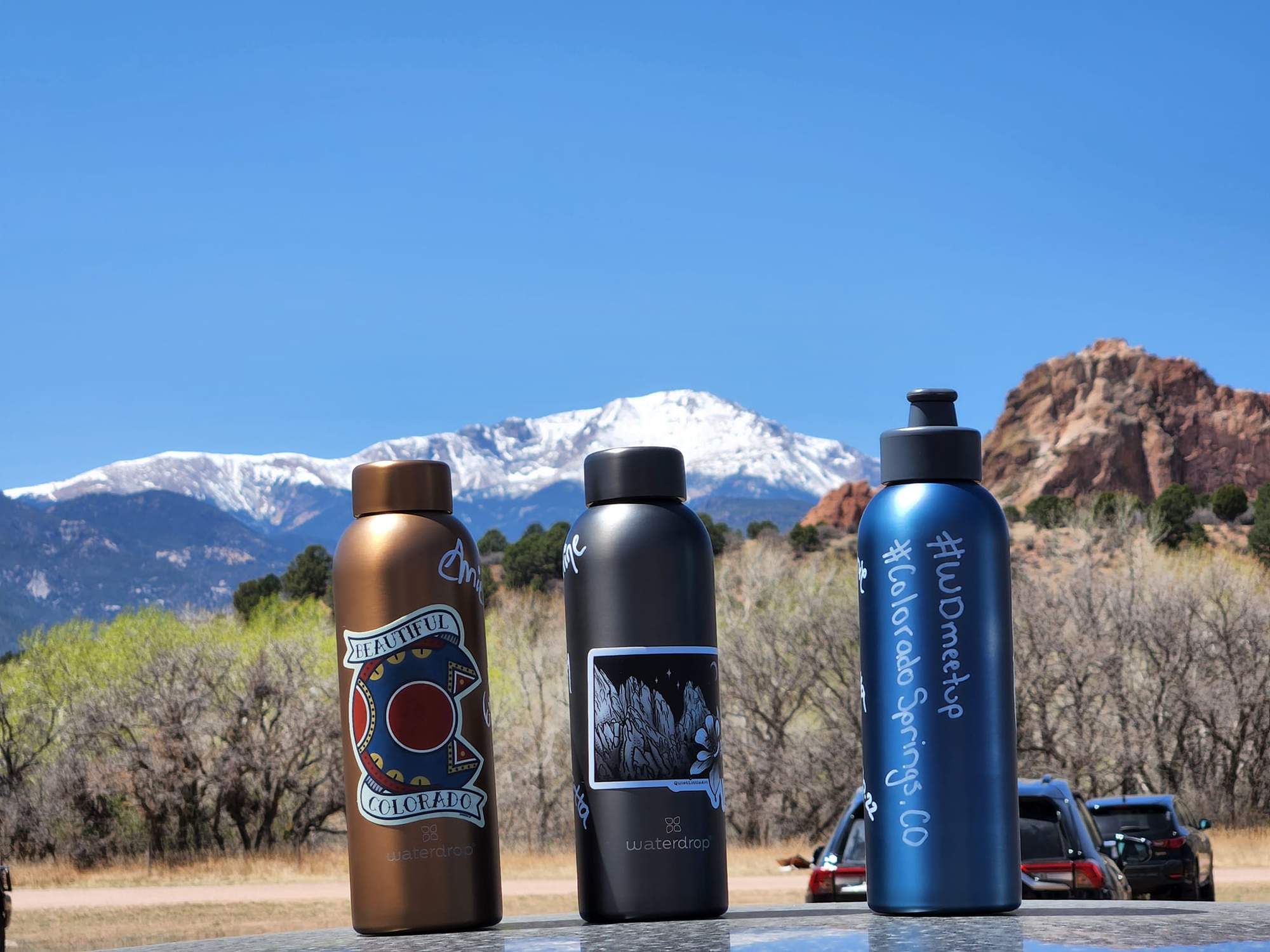 Photo 4 - 5: Community members in the US met up in Colorado Springs. Their favorite waterdrop® bottle could not be missing here, of course.