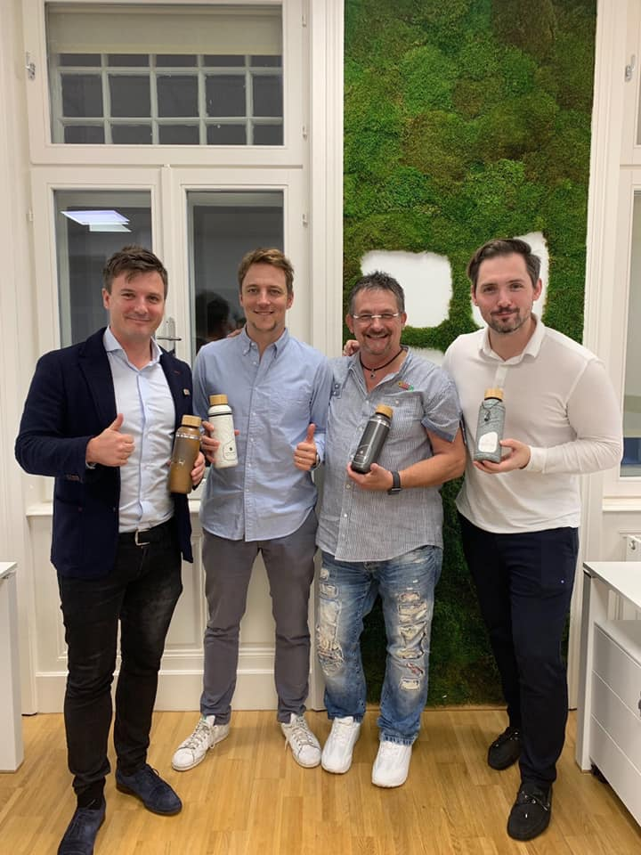 Photo 8: waterdrop® superfan, Reinhard, meets the founders of waterdrop® (Martin, Christoph and Henry)