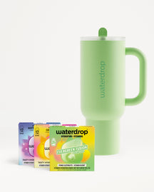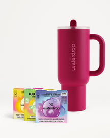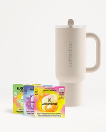36 Servings · Stainless Steel Tumbler · Built-In Straw Lid
